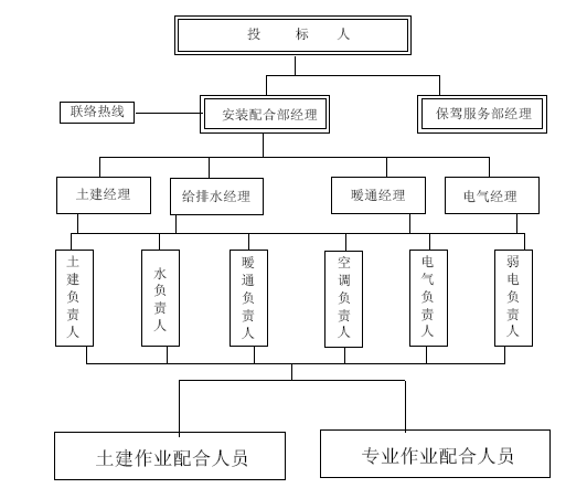 组织机构是避免或降低风险损失的最基本的条件,只有有了合理风险管理组织机构才能保证风险管理的顺利进行,正确进行风险分析,风险决策、合理地进行风险处理以实现风险管理的目标。风险组织机构的设置由风险状况和风险工作量决定,奥体中心体育场改扩建的风险管理分散在投标人的各个职能部门,不设专门的风险管理机构,以兼职的风险管理小组的形式出现,小组的组织机构采用直线职能制形式,组织机构图见图23-2-1。