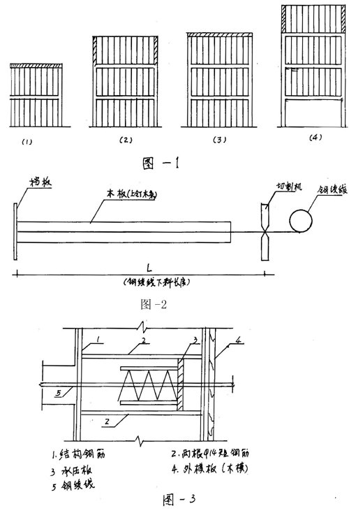 本工程主体结构中,电梯井为钢筋混凝土筒体结构,用定型组合钢模板,已不能满足施工进度和质量需要。九六年我们自行设计的可调式电梯井筒模,应用后,效果不太理想。今年我们在本工程中引用北京中建模板厂生产的伸缩式电梯筒模板,保证电梯井的平整度和垂直度。