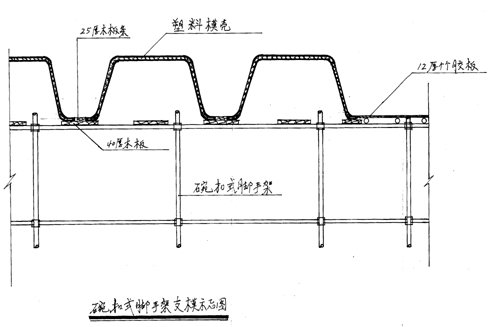 该工程的现浇楼板模板的支撑体系,决定使用碗扣式多功能脚手架体系,与快拆模板体系共用,发挥力学性能好接头构造合理,装拆方便,安全性能好,容易操作,不易丢失,损耗小等优点。在去年使用的基础上,今年在该工程扩大推广使用,加快工程的施工进度。