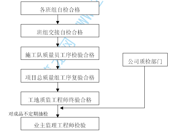 5)、项目部全体管理人员,要面向基层,深入细致地配合好,协调好,执行好,落实好各工序的质量工作,抓实、抓透,不留死角。