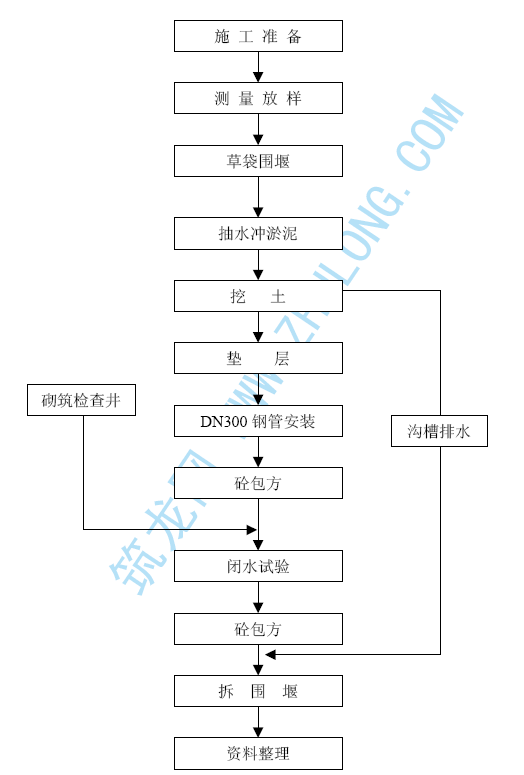 3)、沟槽回填时,应加强管周土方的夯实工作,原有管线两侧可回填部分中粗砂,灌水密实。