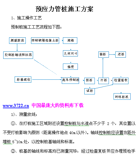 3.1.7.2、根据测量放线的轴线放出桩位线,用木橛或钢筋头钉好桩位,并用白灰线作出标志,使施打沉桩的位置准确。