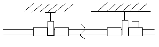 8) 在户内部分给水管与空调水管在同一位置,考虑到室内所有管道的布置,此部分管道可于空调管一侧竖向排列,支架形式下图:对于固定支架形式同上,可采用两管箍进行安装。