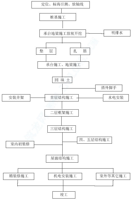 我们将发挥本公司管理的综合优势,协调交叉搭接各专业工序之间的施工,确保本工程在2004 年12 月25 日开工,计划完工日期为2005年6 月17 日,总工期175 个日历天竣工。