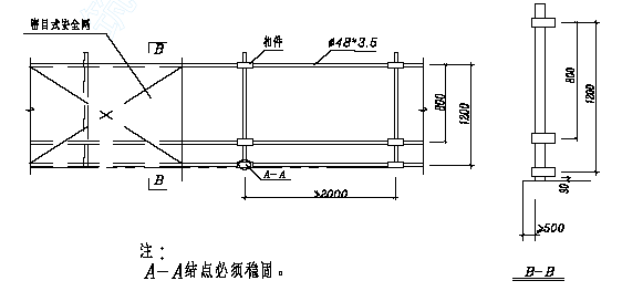 ★ 材料选用Ф48 钢管、扣件连接,紧固力矩4.5—5kg.m。