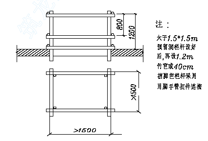 ★ 基坑顶周边防护栏杆的搭设稳定、牢固。