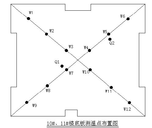 Q、Q 为大气测温点(混凝土表面),W为混凝土内部测温点