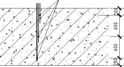 根据对称的特点,底板测温区的测点布置成“X”形。共布置 12组测点,36个测温管。测温管平面间距6m ,竖向间距约为600mm,顶、底两个测温点距底板、顶板面各200 mm。混凝土中测温孔采用导热良好的φ48 ×3.5 钢管制作。此外大气中布设2个测温点,以比较混凝土表面温度与大气温度之差。钢管焊接固定在钢筋上,下端封口,上端用木楔塞住,以防混凝土进入管内。每组测温管长度分别为1600mm、1000mm、400mm,管上口露出底板表面100mm 左右,测温用红外测温仪测读,为能精确体现混凝土内部温度,测温管上口必须用棉包塞严,测完温度继续塞好棉包。中止测温记录后,采用高强度等级无收缩防水砂浆注浆封闭测温管。