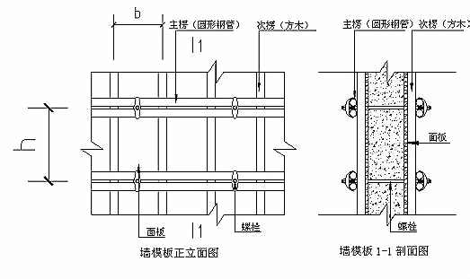 ⑵本工程采用15mm厚木模板,模板加固采用ø48×3.5钢管及60×80方木双背楞,ø12对拉螺杆双向间距600mm进行固定。其固定架应有足够的刚度、强度及稳定性,模板顶撑应牢固、可靠。支设前模板表面应涂刷一层隔离剂。(模板加固见附图)