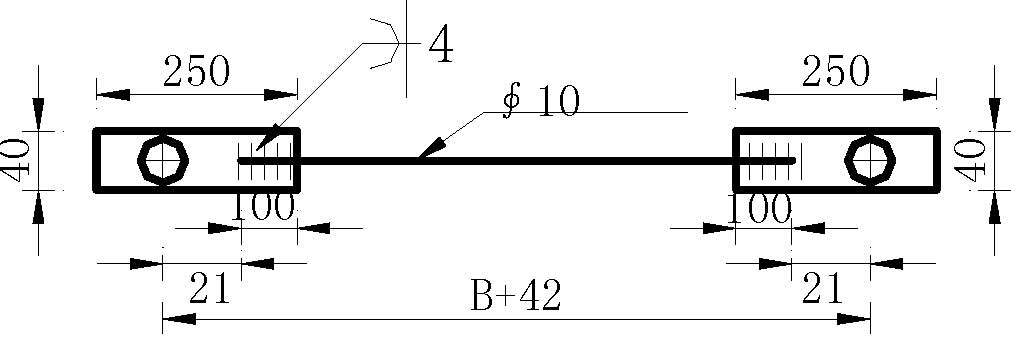 经计算,当承台高度≤2500mm 时,新筑混凝土对模板的侧压力为46kN/m,为防止振捣混凝土时跑模,在相对的两片模板间应设拉结板,拉结板用-50×5 扁钢制成,其间距为600mm,边线为直线的条形承台。模板支撑加固如图4 所示: