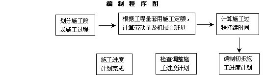 (2)施工进度计划编制还应考虑:各分项工程施工阶段的施工时程之间的互相搭接,互相影响及层次关系,以尽量缩短工期为原则。例如: