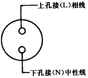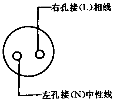 a单相两孔插座有横装和竖装两种。横装时,面对插座的右极接相线,左极接中性;竖装时,面对插座的上极接相线,下极接中性,见图3.3.1.2.1和图3.3.1.2.2所示。